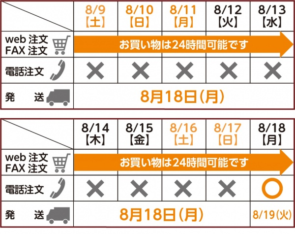【ご注文】 8月8日(金)〜8月17日(日) → 【発送】 8月18日(月)